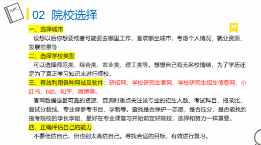张玺晗同学分享了她的宝贵的考研专业课及公共课经验的同时,强调结合自己的兴趣和实力选择报考院校及专业,要坚定目标,持之以恒地做好课程复习,安心备考,全力冲刺,要注重学习方法,科学合理规划复习时间。