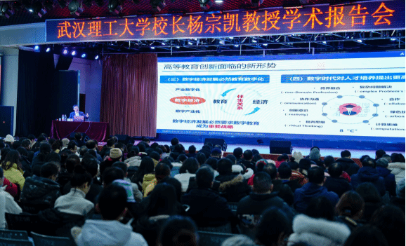 2月23日下午,武汉理工大学校长杨宗凯教授来到英国上市365官网,作“数字化推动高等教育创新发展”主题学术报告,全体校领导以及全校1000余名教职工聆听讲座。活动在梅南礼堂举行,校长赵作斌教授主持会议。