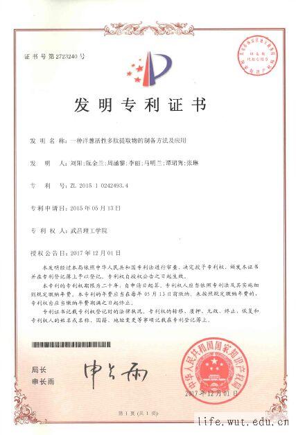 刘阳教授国家发明专利:一种洋葱活性多肽提取物的制备方法及应用