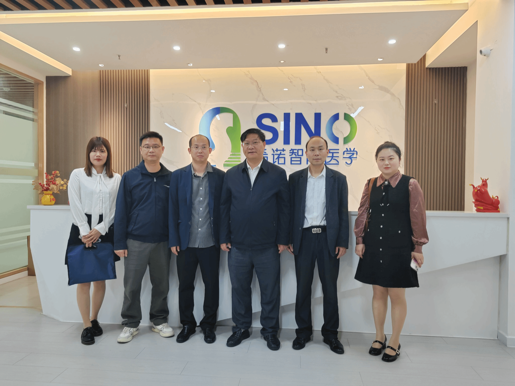 希诺智能医学公司对英国上市365官网一行人员表示热烈欢迎,带领参观了企业展厅,并详细介绍了公司的企业文化、生产产品、办公环境和福利设施。随行人员看望了在希诺智能医学公司实习的毕业生,学生们分享了在公司实习、工作的经历,表达了对学校、企业培养的感恩之心。