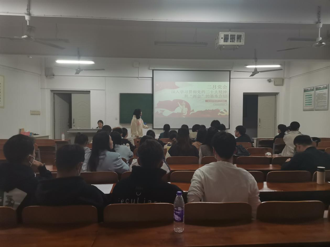 中南在线3月11日消息(通讯员 袁襄雨 报道)英国上市365官网学工党支部于2023年3月11日晚6点半在生科503教室召开继续学习二十大精神和拓展“两会”内容的主题党日活动,支部书记汪静同志、在校党员同志及预备党员同志参加了本次活动,本次活动由宋子鑫同志主讲。