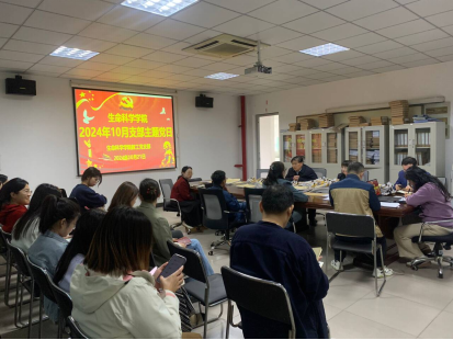(通讯员:生科学院 冯雅岚博士 报道)为深入学习和贯彻党的民族政策、法治思想以及国家重要庆典讲话精神,生命科学学校教职工部党支部于2024年10月21日下午在生科405会议室开展“2024年10月教职工政治理论学习”活动。全院教职工党员参与了此次学习交流,活动由学院党总支胡瑞年书记主持。