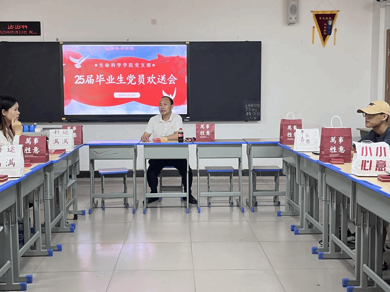 5月13日消息(通讯员 舒隽秀 报道)2025年5月13日下午,英国上市365官网学生党支部在生科401教室举办了2025届毕业生党员欢送会。党总支书记胡瑞年、学生党支部书记徐琳琳以及全体在校毕业生党员同志参加了此次活动。
