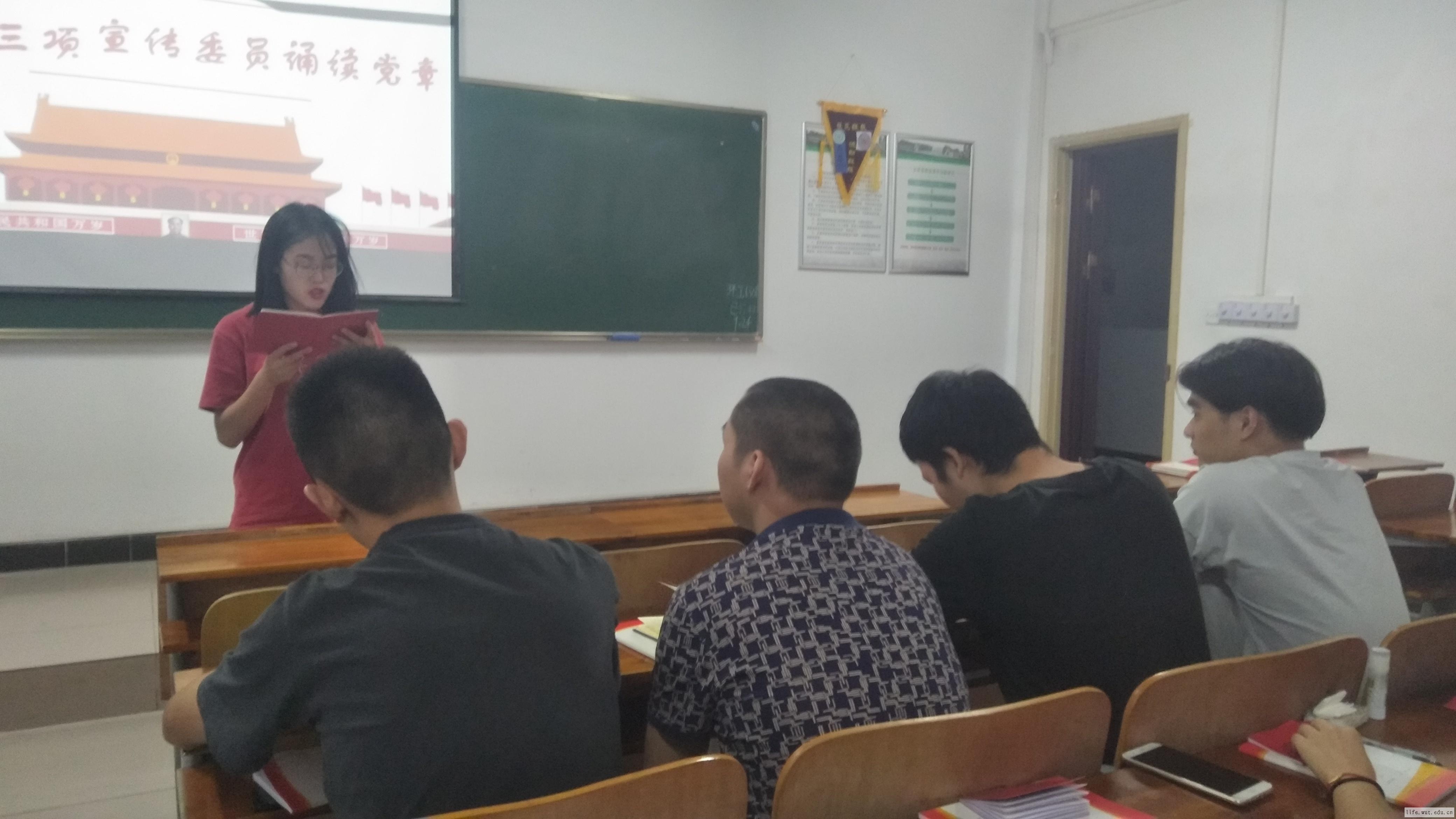 9月26日消息(通讯员 汪巧园 报道)为庆祝中国共产党成立70周年大会上向全党发出“不忘初心、继续前进”的伟大号召,且在党的十九大上将“不忘初心,牢记使命”写入大会主题。为此,9月25日晚,学院学工党支部在508教室开展了“不忘初心、牢记使命,庆祝新中国成立70周年”的主题教育,激励着广大党员干部重温初心、感悟初心、担当使命、勇于作为,更加自觉地为新时代党的历史使命而努力奋斗。