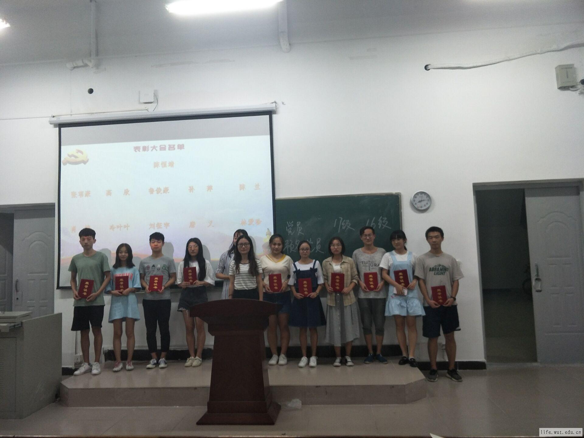 接下来由来自该院党支部支部委员盛芬为大家讲解党支部的考核制度,及填写资料时的规范。随后,第十四期优秀积极分子汪巧园代表发言。汪巧园同学来自该院药学1701,她谈到,入党让自己成为一个更优秀的人,并且在学习的过程中了解到很多党性知识,深刻的认识到没有哪一个组织比中国共产党更加伟大。紧接着宣布了优秀积极分子名单,大家上台领取奖励并与该院学工党支部书记鲁晓煜合影留念。随后是来自该院生物工程1601的优秀积极分子鲁俊豪代表发言。他表示端正自己的入党动机,通过自己去影响他人 为他人带来光和热,这是他从思想上做出的最大改变。活动最后由学工党支部书记鲁晓煜同志总结,她说道:“作为积极分子的你们,在我看来最重要的一个问题就是你们始终要明白,你为什么要入党?只有想清了这个问题,你们才会真正有所改变。”