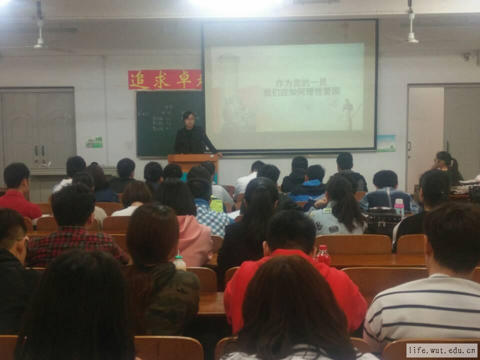在生活会开始之前,先由支部委员对支部近期问题进行总结,后由支部书记王丽艳做会前发言。在发言中,王书记首先对支部委员提出的问题进行近一步阐述,而后对支部所有成员提出要求:作为支部成员,应严格要求自己,有责任意识,在做到基本的责任与义务之前首先要学会做人,然后再对自己提出更高的要求,向更好的方向发展。“只有在理性的前提下,一个人做出的决断才是正确的。把自己的本职工作做好,不触犯底线,也就是爱国的一种体现。而作为党支部的成员,在以后的生活中更应以一种充满正能量,积极向上的心态来对待。”在谈到本次生活会主题时,王书记说道。紧接着,由主持人播放韩国部署萨德系统的一段视频,进而引出问题:“如何看待韩国部署萨德系统?”在场人员积极讨论,纷纷发表自己的见解。生工1501班姚少成说道:“就韩国本身而言,部署萨德系统是为了维护自身安全,这么看来是合理的,但是它威胁到其他国家就是一个错误。这引起了一系列的反韩行为,朝鲜半岛地区动荡不安也造成了更大的矛盾,甚至引起了世界的不和平。”部署萨德系统后抵制韩货的现象,钓鱼岛争端引起的砸车事件,那么我们如何看待非理性爱国这一行为呢?什么是爱国?我们又应如何爱国?思考过后,大家都积极举手踊跃发言,同学们都表达了自己不同的看法和观点,现场掌声响起一阵阵掌声。本次生活会在一段大学生理性爱国的视频中进入尾声。