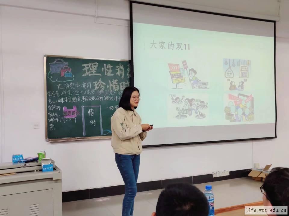班会结束后,记者采访到了药学1901班的主讲人帅星宇,她说:“今天这个班会的日子比较特殊的,明天就是大家期待的双十一。很多同学都在期待可以进行一次大购物,然而,如果没有这个所谓的双十一,我们也许不会去盲目地消费。每一分花出去的钱都是来之不易的,我们需要理性消费。再者,购物计算各种津贴花费了同学们的大多数时间,影响了同学们的学习。这次班会的主要目的是为了呼吁同学们理性消费,珍惜时间,为不久后的期中考试做准备,取得良好成绩!”(完)