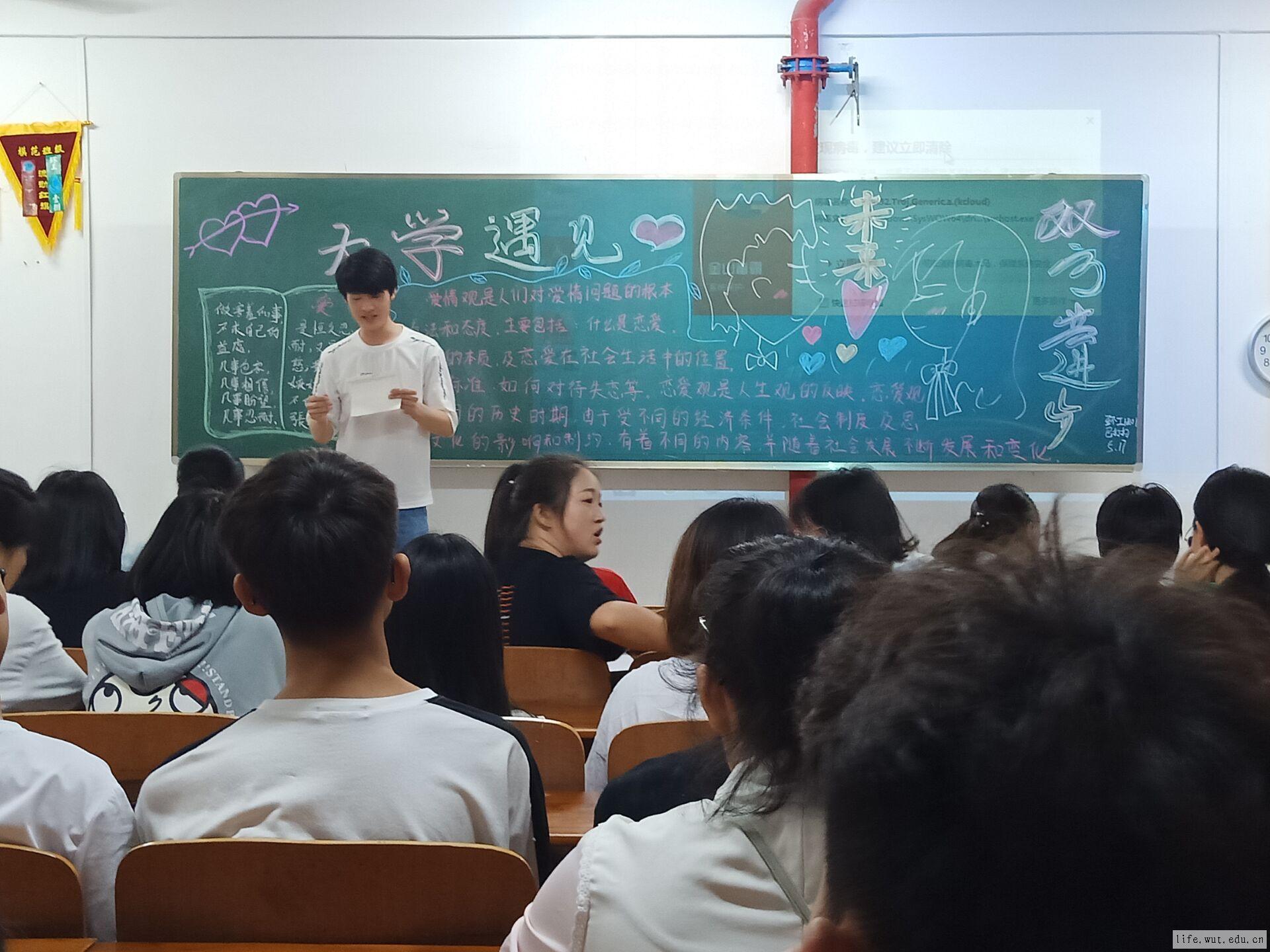 药学1801班的胡嘉成分享到:本次班会让我明白了,一起往一个目标努力的爱情,能让我觉得有一个人陪着,让我感到了舒适和安心,虽然我不知道为什么,但是这种感觉真的很好,但是如果恋爱者双方的目标都不同,容易造成误解和不理解,导致双方的分离。