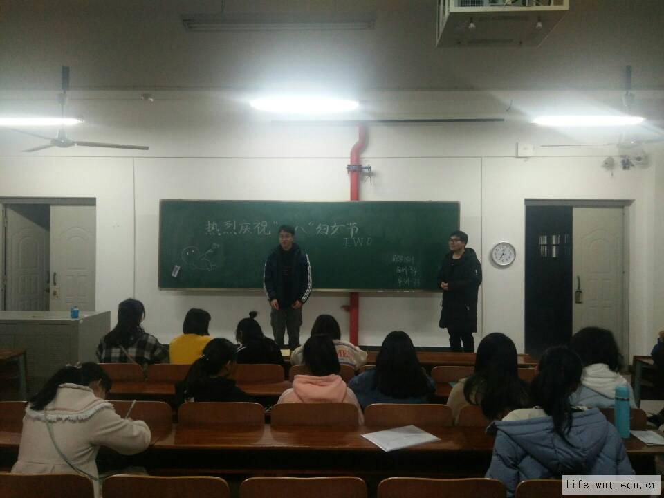 据了解,环境工程1801班组织同学们当场向母亲发条祝福的短信,该班副班长黄云轩以身作则,向他母亲打电话像母亲说了“妇女节快乐”和一些祝福语。药学1801的班会开展形式也尤为精彩。该班在此班会上展开了一个“三分钟活动”。这个活动将此次班会推向高潮,男生们在这个活动中花样百出,“祝女生们怎么吃也不长胖”,“祝女生们考试不挂科”等等祝福得到女生们热烈的掌声呼应。除此之外,药学1801班还举行了关于妇女节的趣味竞答的活动,让同学们更加了解妇女节的历史、了解妇女从古至今的贡献。在班会的最后,主讲人讲了居里夫人和董明珠的事例让同学们懂得赞美妇女,为妇女骄傲。