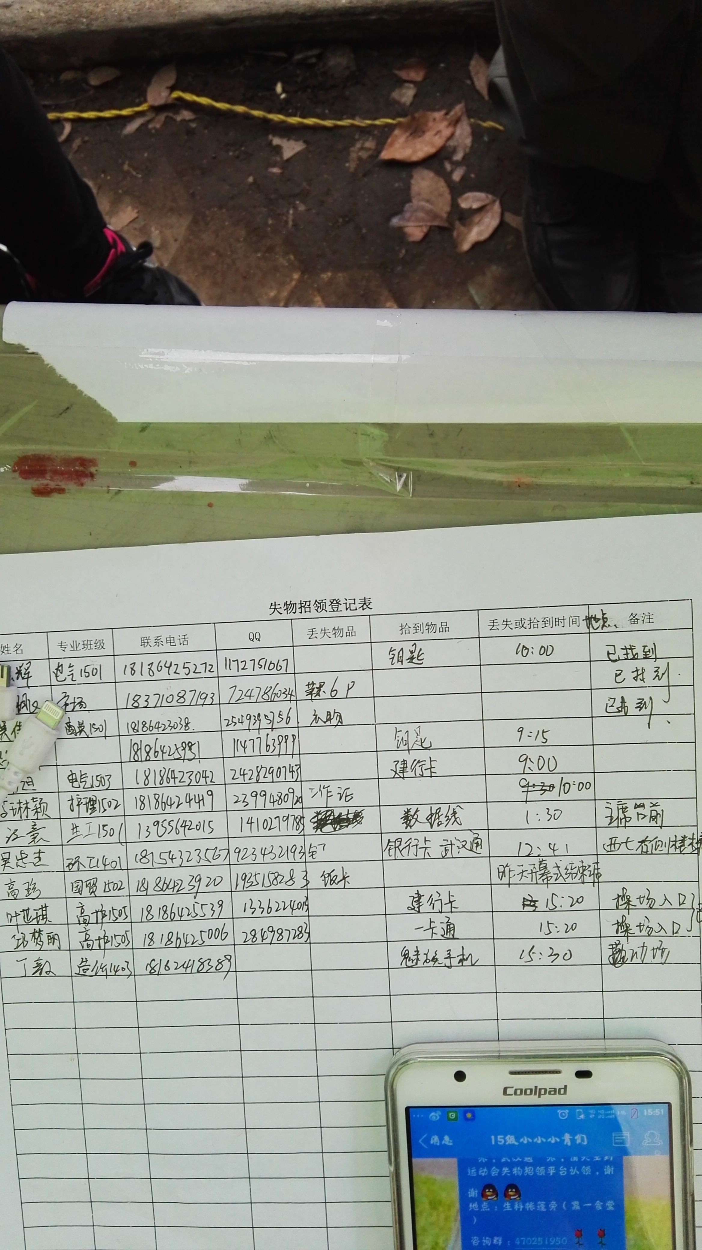 运动会期间,不少同学和老师因参加或观看比赛,不慎遗失了类似手机、钥匙、钱包等私人物品,不仅造成了经济上的损失,还给生活造成了极大的不便。即便有热心的人拾到物品想要归还也难以寻到失主。鉴于这一情况,青工部联合广播台,在失物招领平台播报招领启事。在生科院失物招领帐篷里,青工部的干事正在登记捡来物品的详细信息,而另一干事则在分拣,进行妥善保管,以保证上交的物品完璧归赵。自失物招领平台成立以来,已有三位失主成功找回了所丢失的物品。失主表示:"失物招领平台的建立给人们带来了很多帮助,也减少了很多不必要的麻烦"