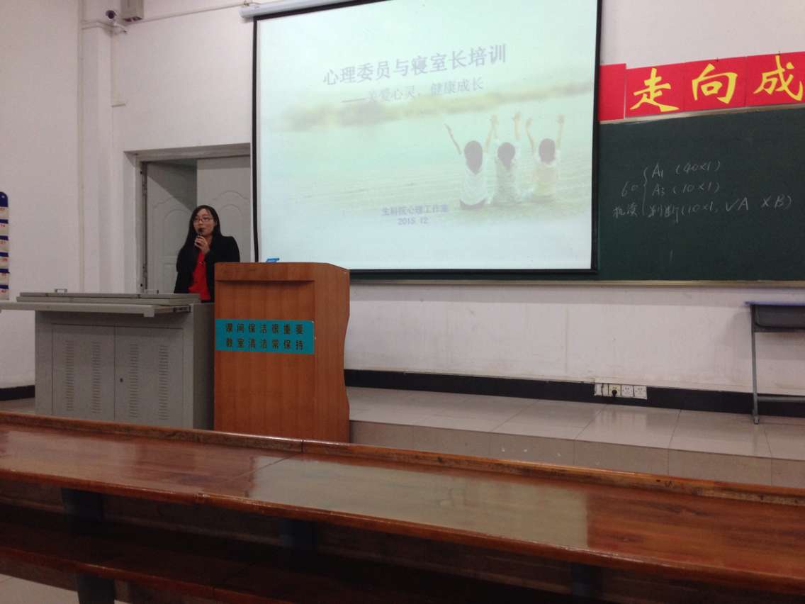 12月18日消息(大通社见习记者杨鸿翔)12月17日晚六点半,在英国上市365官网102教室开展了由王丽艳老师主讲的以“关爱心灵,健康成长”为主题的心理委员与寝室长的培训会。