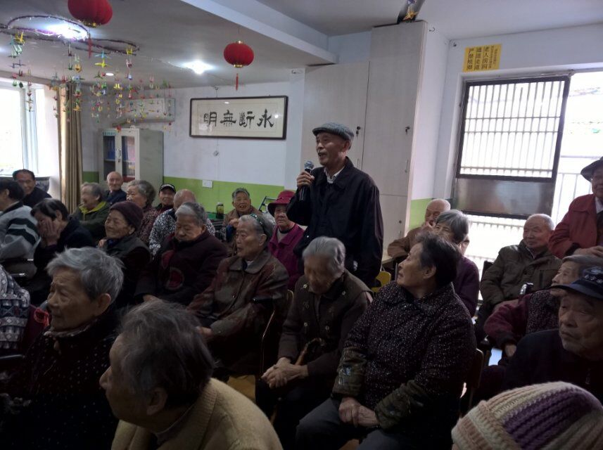 11点是老人准备吃午饭的时间,特别帮公益行团队也将与老人告别。几位精神矍铄老人,舍不得志愿者离开。叶若兰老人对大学生们说,她今年80岁了,因子女忙于工作,无暇照顾,所以选择了大家庭安养院。在这里生活的很幸福,喜欢这里的气氛,愿意一直在这里生活下去。并希望他们再到这里,为老人们送来欢乐。