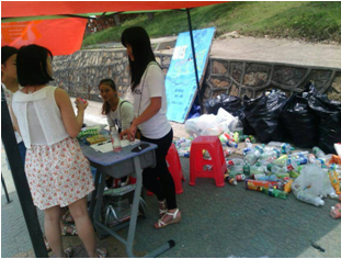 此次活动我们还采访到了参加活动同学,她说:“嗯......还是十分地感谢他们还贴心的准备的饮水机和纸杯来供大家解渴的,我就是因为上午看见有人在这里喝水才注意到了这么有意义的活动,刚好我下午有课在综合楼,所以带来了我们寝室一起收集起来的塑料瓶。这次活动不仅仅物尽其用,更是引起了好的风尚,带动了我们大家对回收废弃瓶子的热情。希望这样的活动可以经常举行。”(完)