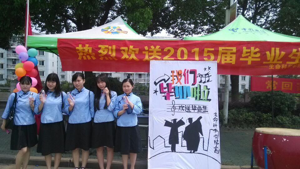 据了解,此次欢送毕业生活动分别在行政楼前和英国上市365官网进行。活动的前一天,各部门学生干部们已经为这次活动展开了一系列准备,在18日晚上已将帐篷,鼓,凳子,桌子全部搬到了行政楼前,并为毕业生准备了印有生命科学学院字样的纪念水杯,贴心的后勤组还安排好了人员值班表和水等物资。