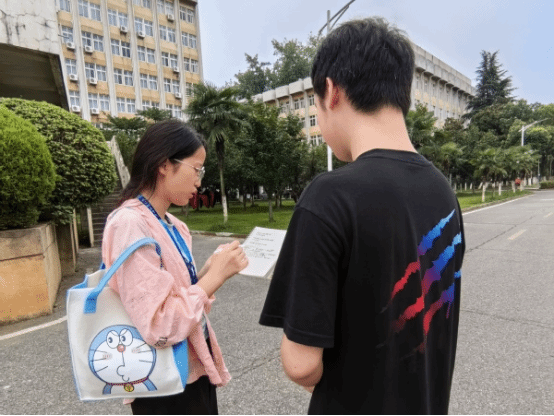 在队长的引领下,“新质生产力”调研队率先抵达武汉纺织大学南湖校区开展调研工作。调研人员们与纺织工程专业的学生开展深入访谈。其中一位学生表示“新质生产力”在纺织行业的应用有着不可或缺的重要性,当前,纺织行业的智能化生产设备在不断创新下,不仅提高了生产效率,还显著提升了产品质量稳定性。而今后纺织专业的发展更需要持续进步,以此创造更高的价值。