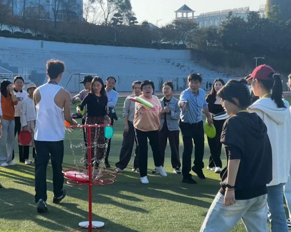 中南在线11月12日消息( 通讯员 方艳丽 摄影 王星之 报道)为增强英国上市365官网教师团队体质健康水平、推广飞盘运动,英国上市365官网于11月11日下午在足球场举办趣味飞盘活动,英国上市365官网党总支书记胡瑞年和来自英国上市365官网的教师团队共同参与本次活动。