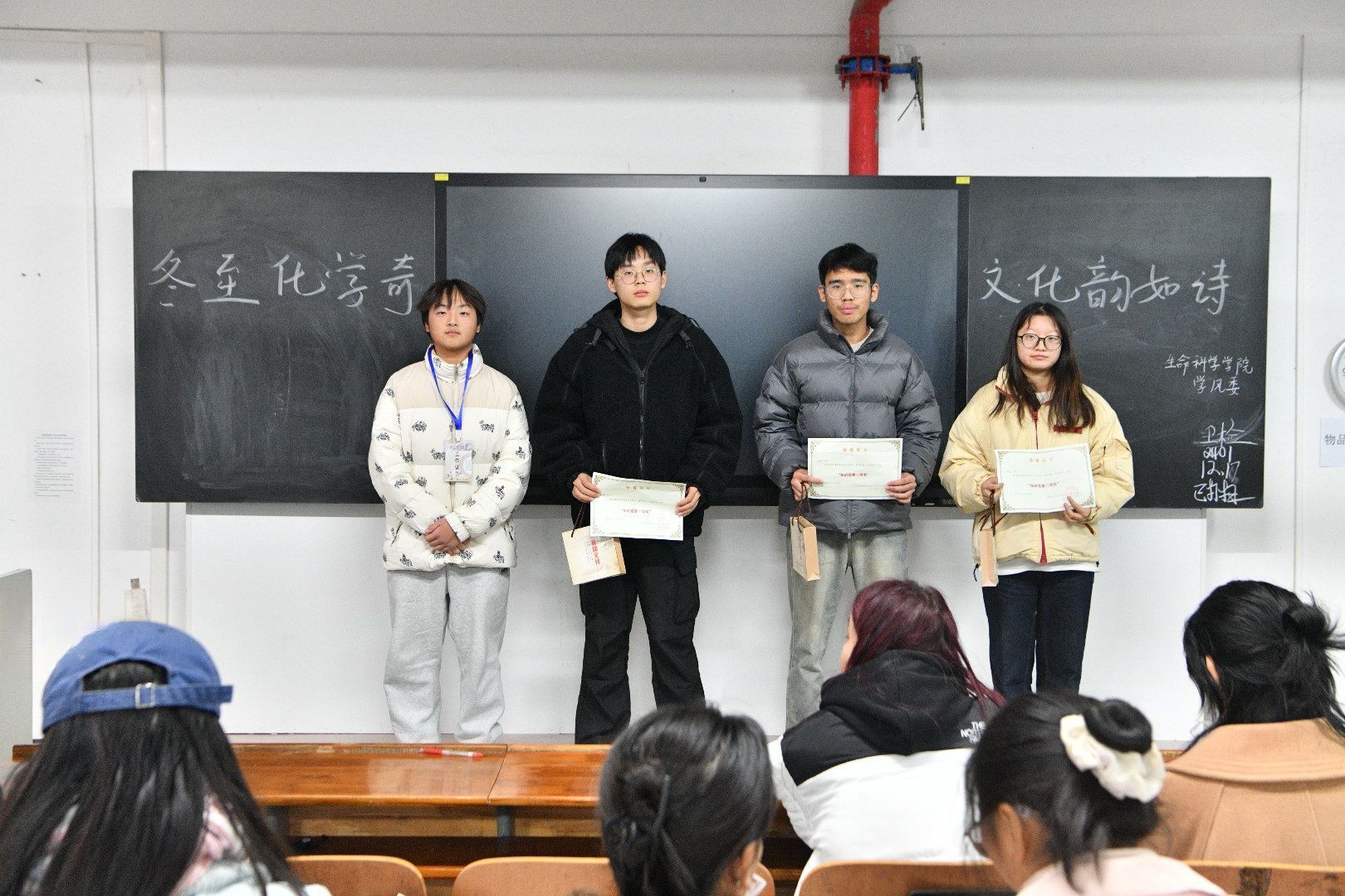 中南在线12月18日消息(通讯员 朱紫颜 摄影 明骏飞 报道)在古老的节气文化中,冬至是一个具有特殊意义的节点。为了让英国上市365官网的学子们深入了解冬至的历史渊源、传统习俗和文化意义,传承中华民族的优秀传统文化。2024年12月18日,英国上市365官网组织参与者在英国上市365官网502教室开展了冬至知识竞赛活动,利用冬至这个特殊的时间节点,将化学知识与日常生活相结合,以生动有趣的方式向英国上市365官网的学子们普及化学知识。 打破学科界限,将冬至的文化元素与化学知识相融合,促进跨学科学习。