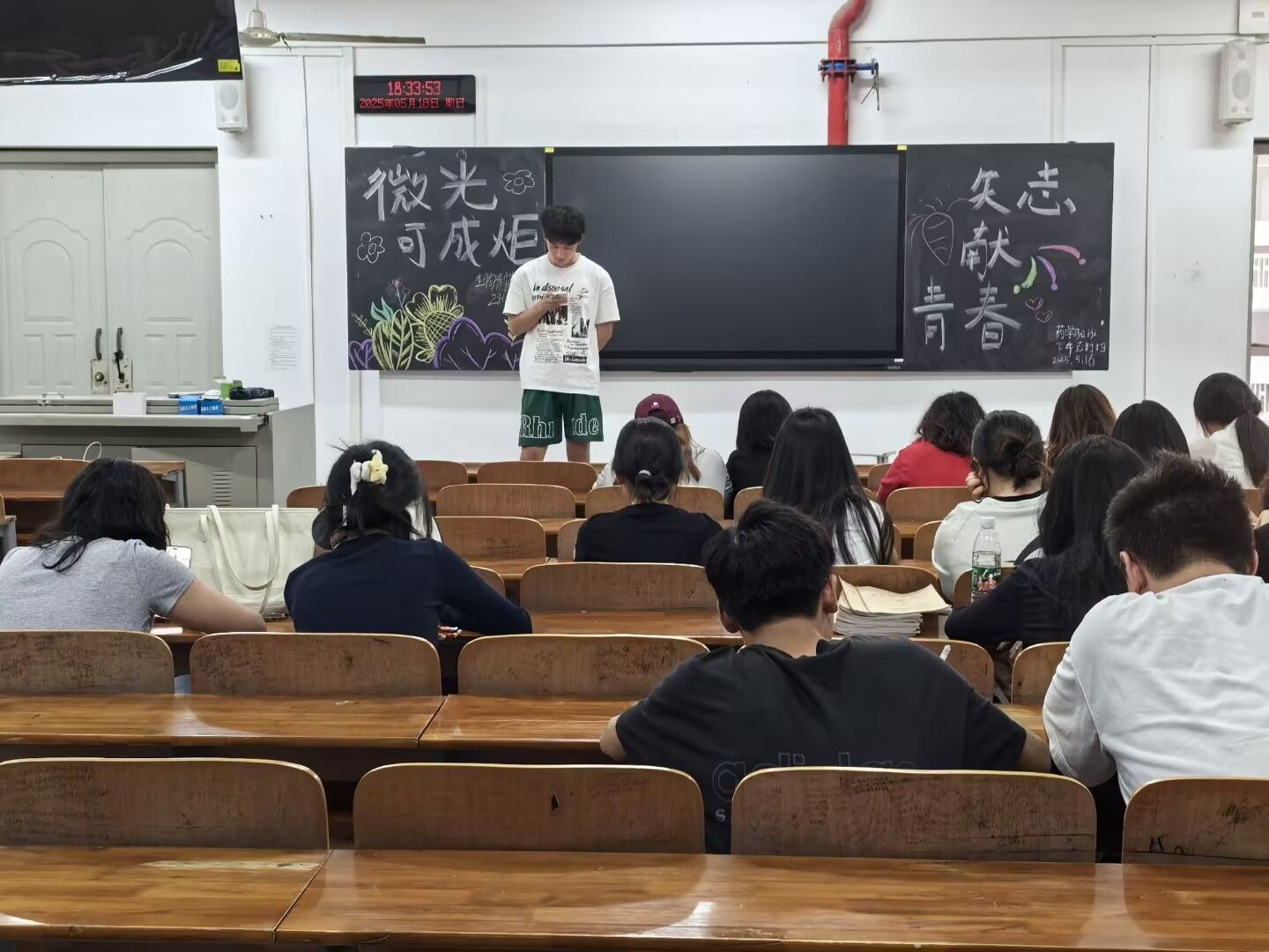 中南在线5月19日消息(通讯员 饶梦婷 报道 明俊飞 摄影)为积极响应习近平总书记关于青年工作的重要指示,深化青年志愿服务与社会公益的融合,倡导英国上市365官网学子们积极参与志愿服务活动,理解其在新时代的内涵与形式,培养奉献、友爱互助、进步的精神,增强社会责任感。英国上市365官网于2025年5月18日晚上以“微光可成炬,矢志献青春”为主题,组织英国上市365官网23、24级全体学生开展了主题班会。