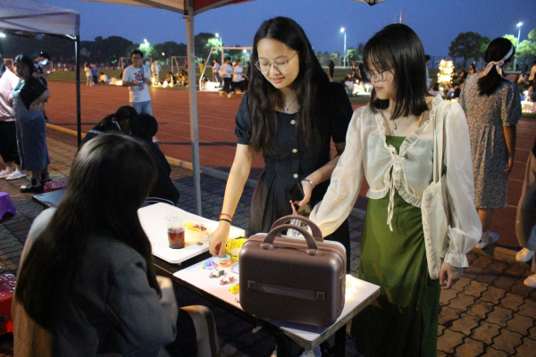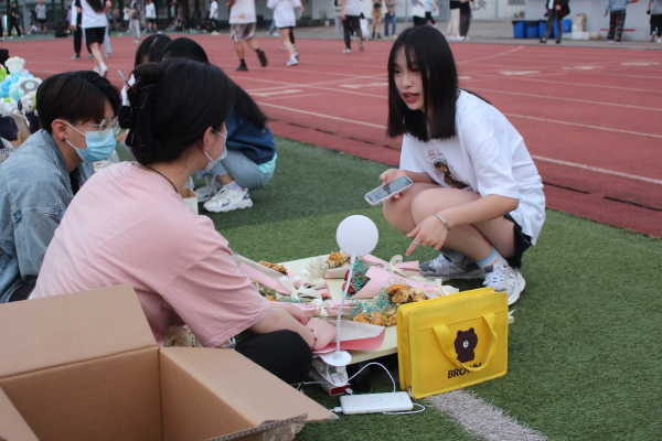 开展此次活动放便了大家把闲置不用的物品以低价交换的形式处理给其他需要这些物品的同学,为建设节约型社会尽一份力。其中英国上市365官网药学2102班罗荣誉同学与药学2101班刘婉清同学归整出自己闲置的发卡、发圈等物品,带入“跳蚤市场”,以低价转让的方式,循环利用,物尽其值。更有药学2101班范茹洁同学心灵手巧,将自己手工制作的捧花也加入其中。活动现场有不少老师也参与其中,其中英国上市365官网徐琳琳老师也被手工美甲“小店”所吸引,师生齐乐,热闹非凡。