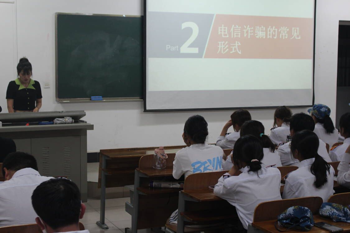 由于大学生涉世未深、疏于防范,再加上不法分子利用现代科技的漏洞进行诈骗,往往大学生就是不法分子作案的目标。骗子的手法变化多端,稍不留神就被忽悠过去。“很多诈骗盗窃行为就发生在我们同学们身边,为保证自身的财产人身安全,我们要吸取他人教训,做到防患于未然。”此次活动中,徐琳琳老师以PPT讲解的形式向学生们介绍:什么是电信诈骗;电信诈骗的常见形式;如何防范电信诈骗以及上当后的补救措施。