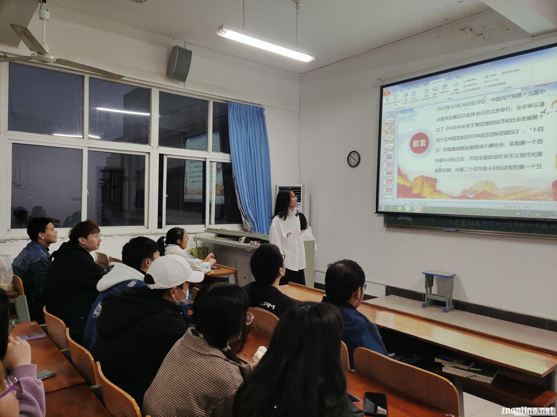 11月23日消息(通讯员 李伟豪 报道)2020年10月26日至10月27日,中国共产党第十九届中央委员会第五次全体会议在北京成功召开,中共中央政治局向中央委员会报告工作,研究了关于制定国民经济和社会发展第十四个五年规划二0三五和年远景目标的建议。为了学习、贯彻此次五中全会的内容和长远的目标,学院于22日17时30分组织19级、20级学生展开了聚焦十九届五中全会的主题班会。