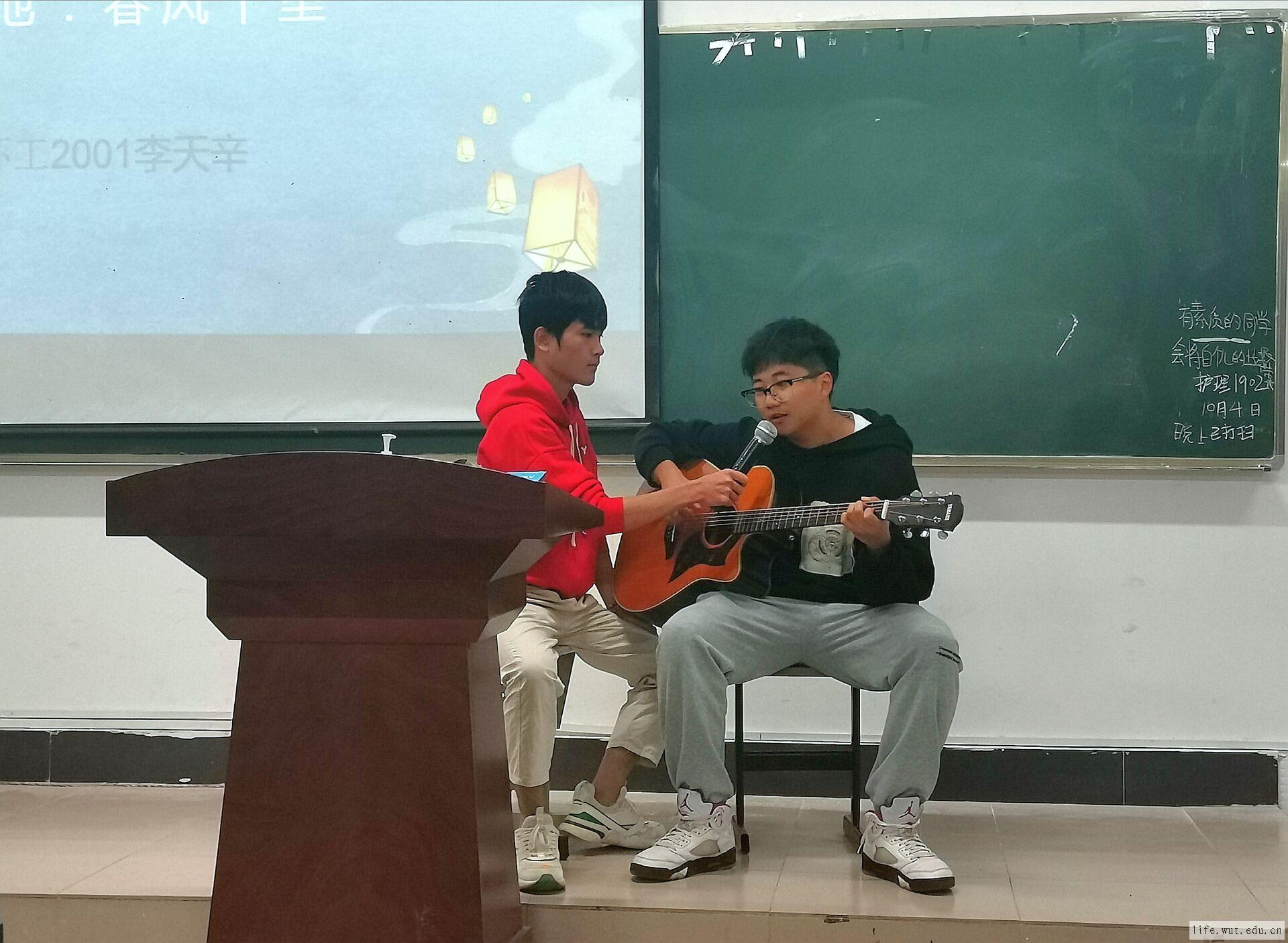 活动伊始,生物工程2001马兴冉激昂地朗诵《中华儿女,普天同庆》,同学们深情陶醉,感慨祖国华诞;紧接着,环境工程2001班付海池在大家阵阵热烈地掌声和欢呼声中表演了舞蹈《千里邀月》;“我在鼓楼的夜色中 为你唱花香自来,在别处 沉默相遇和期待,飞机飞过车水马龙的城市”环境工程2001班的李天幸深情地唱着《春风十里》。他说:“选择的这首歌曲不仅想表达春风十里不如你的情愫,更喜欢能在大学学习的欢余中寻找到只属于自己沉醉的夜晚。”
