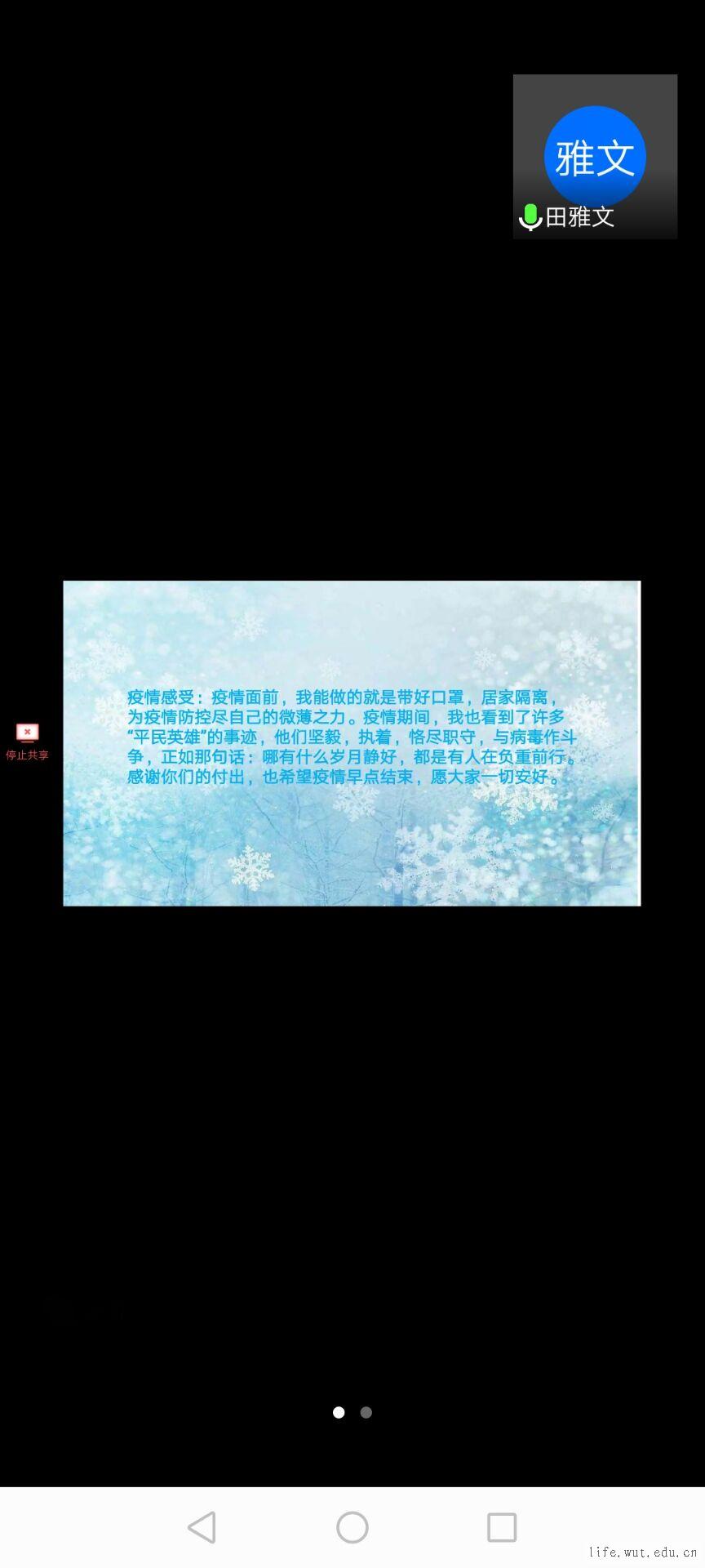 此次班会活动以朗诵清明、疫情相契合的积极向上为主古诗词诗歌,每个寝室选派一人参赛,共11人参赛,其中药学1901田雅文,李梦娇,李书雅三人赢得了同学们最多的票数。药学1901班学习委员叶圣昊用“腾讯会议”召开此次活动并担任主讲人。