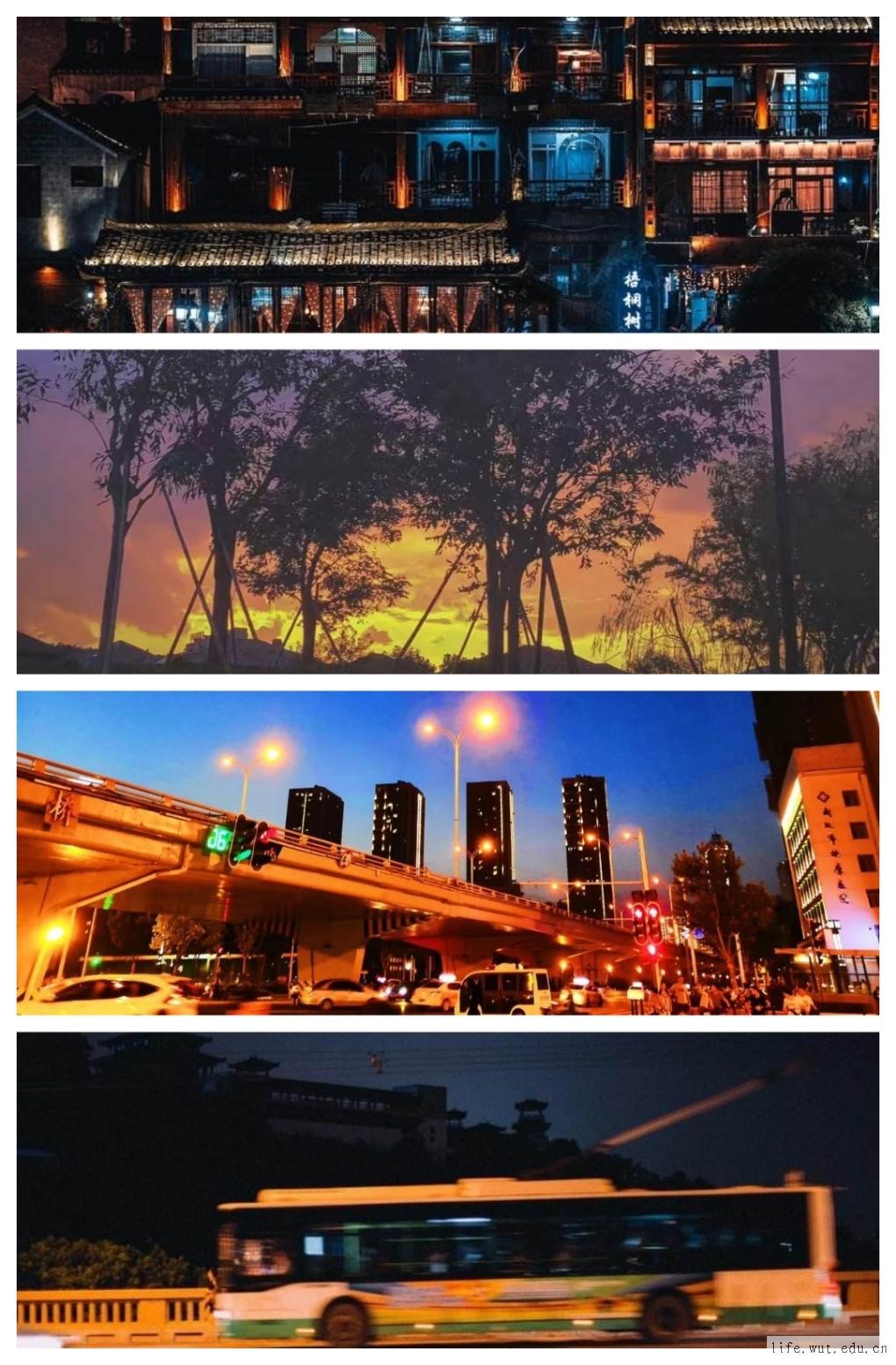 线上活动是最美照片征集活动,同学们在群里上传自己拍摄夜晚的景色,有人上传了汤逊湖畔902路公共汽车飞驰的身影,有人上传了曾经武汉立交桥的热闹繁华景象,有人上传了学校对面高楼大厦的灯火绚烂。在这一张张照片中,饱含同学们对繁华武汉的思恋,对校园生活的怀恋。