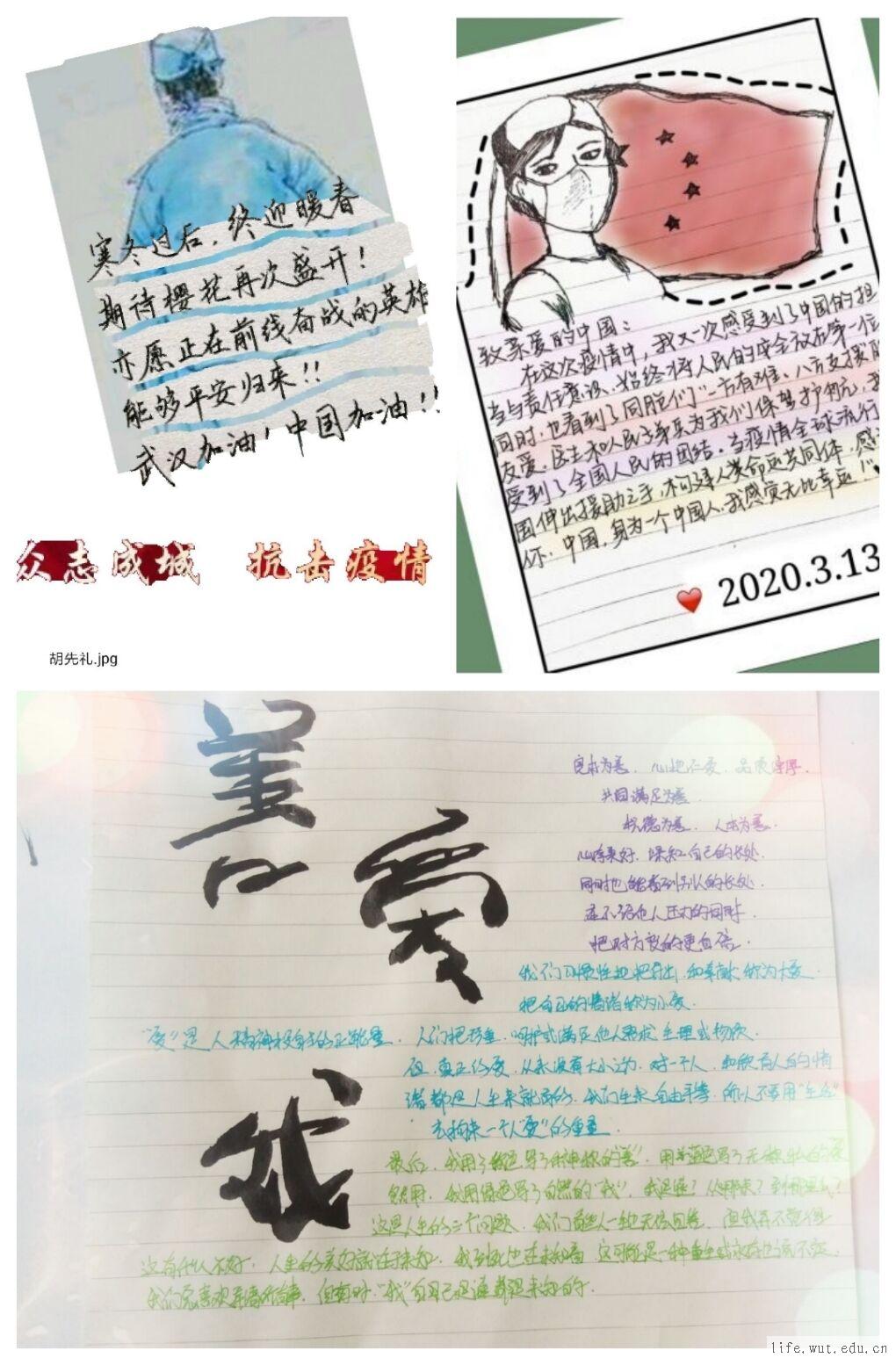 “捕捉最美瞬间”照片征集小视频中,同学们用照片定格在小区里做志愿服务的瞬间,用镜头记录2020年春天繁花盛开的多彩时刻。“春天到了,我想回学校了”“等疫情结束,我们一起去东湖散步”每张照片中的文字都展现了同学们对武汉对学校的思念。在这个温暖的视频中,展现了一个春暖花开,疫情的阴霾也将过去的场面。温馨的画面,平和的配乐,都在慢慢的抚慰同学们的心灵。