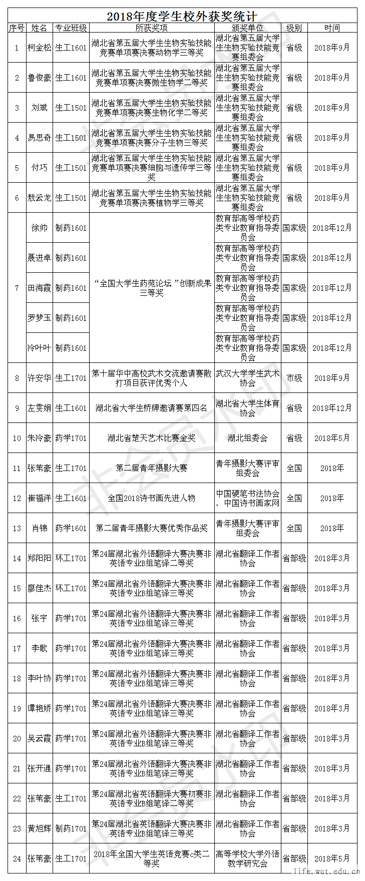 2018年英国上市365官网学生校外获奖统计