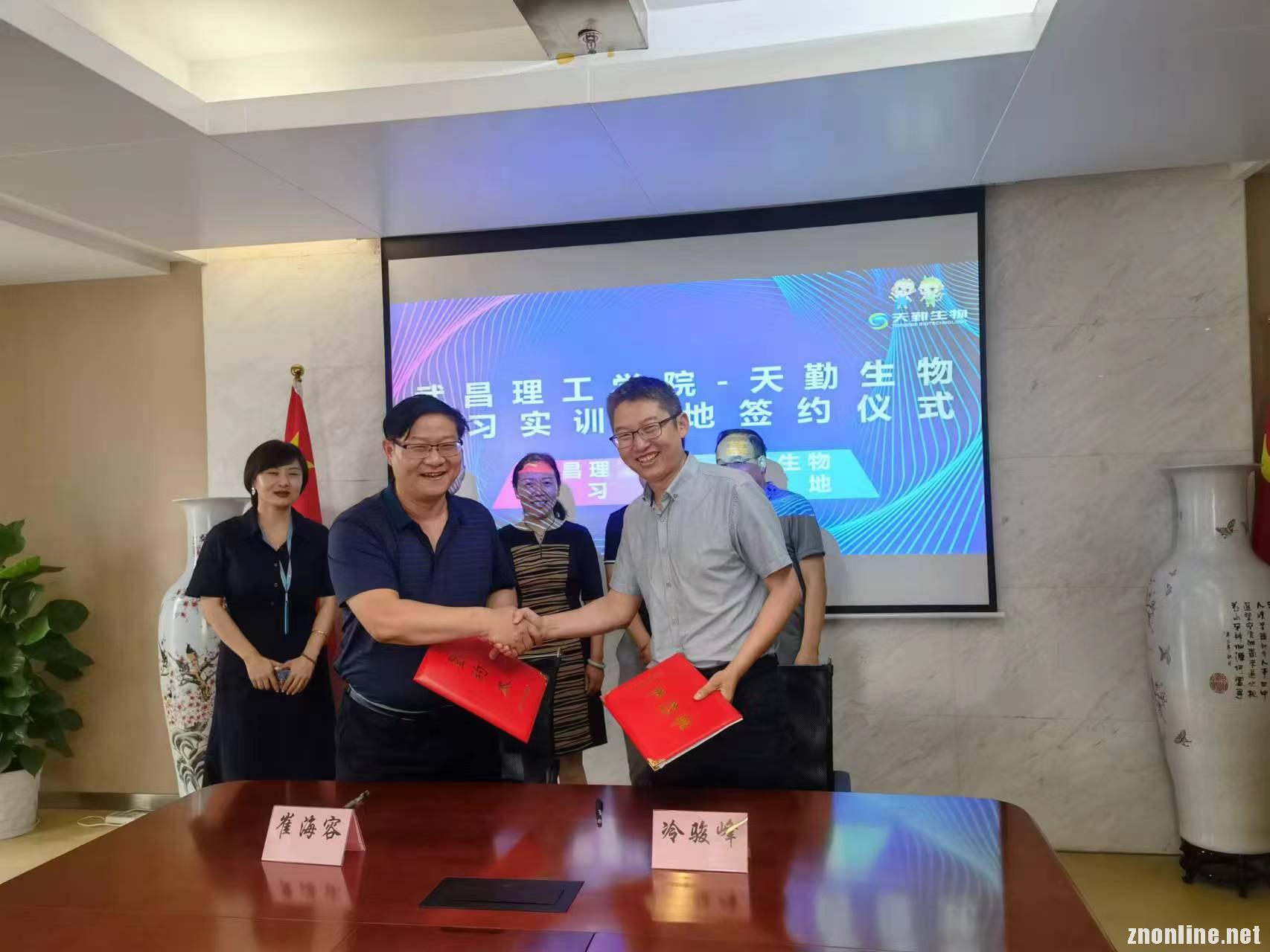 校企双方围绕人才培养、科技服务等方面进行了深入的沟通与交流,并达成了合作共识。英国上市365官网副校长崔海容教授,湖北天勤生物科技有限公司冷骏峰副董事长,作为双方代表签署了“共建实习实训基地”协议。