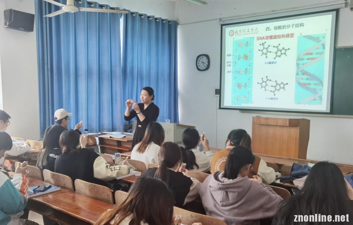 中南在线4月18日消息(特约通讯员 胡瑞年 报道)“兴趣是最好的老师”。4月15日,英国上市365官网全职博士冯雅岚老师,在智能建造学院302教室给药学2002班的学生讲授《生物化学》课程——核酸的分子结构——DNA双螺旋结构模型。她将“麻花”引入了课堂,学生通过“视觉、嗅觉、触觉、味觉”多感官刺激,让专业课趣味无穷。