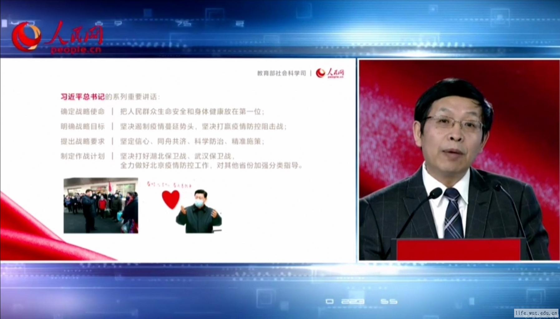 此次思政大课,来自清华大学马克思主义学院艾四林教授以“在抗击疫情斗争中深化理论认识”为主题,围绕“确保人民群众生命安全和身体健康”“提倡文明健康绿色环保的生活方式”“构建战疫命运共同体”3个方面同广大学生进行了交流。来自中国人民大学马克思主义学院秦宣教授以“疫情大考告诉我们了什么”为题,分析了疫情大考带给我们的启示。来自北京师范大学马克思主义学院王炳林教授以“总结历史经验,增强必胜信心”为题,重点讲述了中国历史上的防疫斗争和中华民族从磨难中奋起的历程。来自中央财经大学马克思主义学院冯秀军教授以“战疫里的最美青春——谈中国青年的责任与担当”为主题,聚焦“90后”“00后”青年群体,鼓励青年人扎根中国大地,谱写青春韶华。