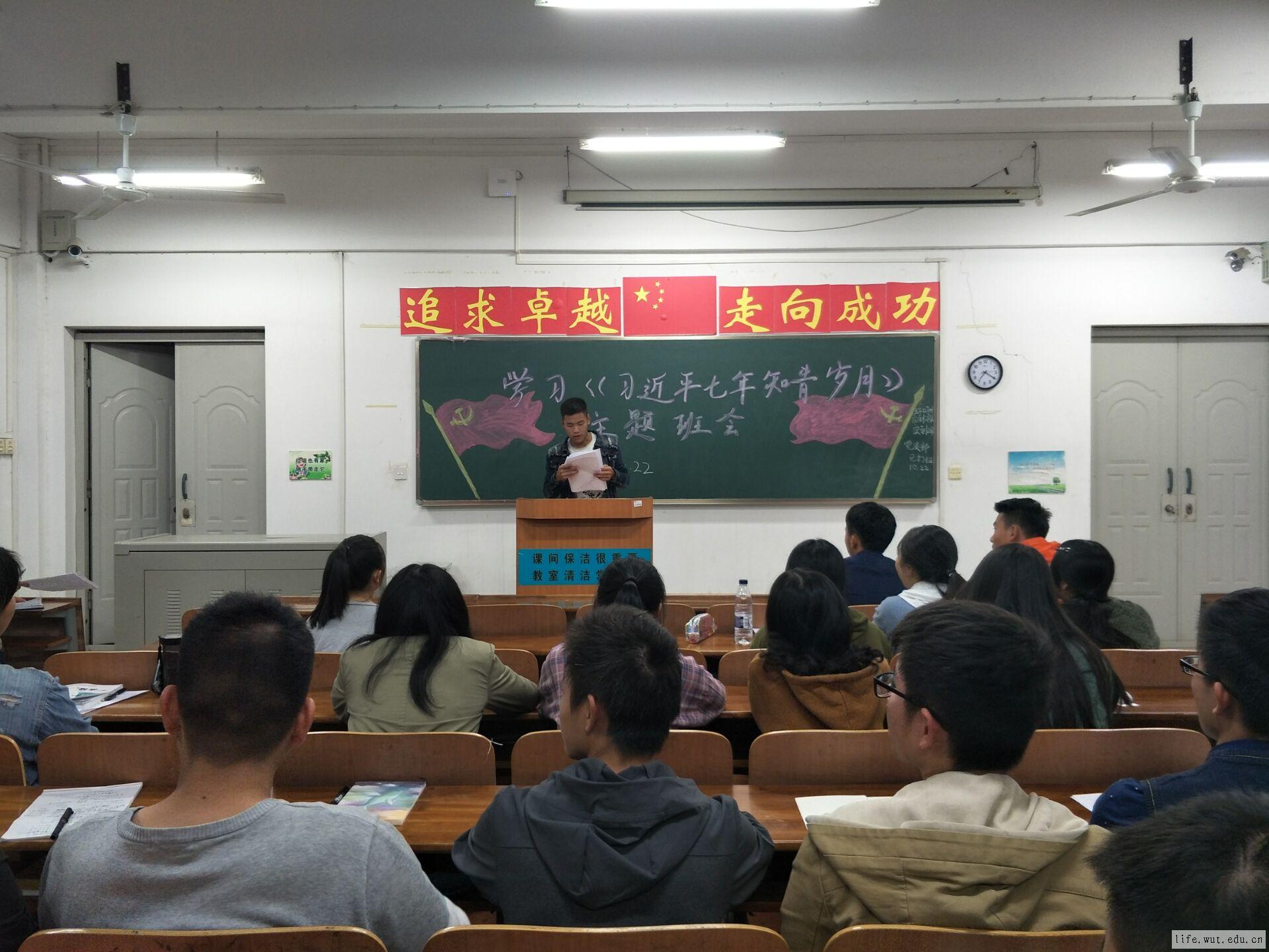 据悉,此次班会是为了引导同学们学习习近平总书记矢志不渝的理想追求、爱国为民的家国情怀、勤奋好学的进取精神、求真务实的进取精神、吃苦耐劳的优秀品质。班会开始时,环境工程1701班的文艺委员石虎向同学们介绍了这本书的大致内容,让同学们领会学习的意义,提高思想自觉性。班会上,体育委员何贤睿为同学们阅读了《习近平的七年知青岁月》里的一段内容,让同学们深刻了解习近平新时代中国特色社会主义思想。最后,环境工程1701班的班长吕利慧以问答的方式和同学们展开讨论此次班会的感想。班会结束时,环境工程1701班的谭家兵同学对此次班会进行了总结。