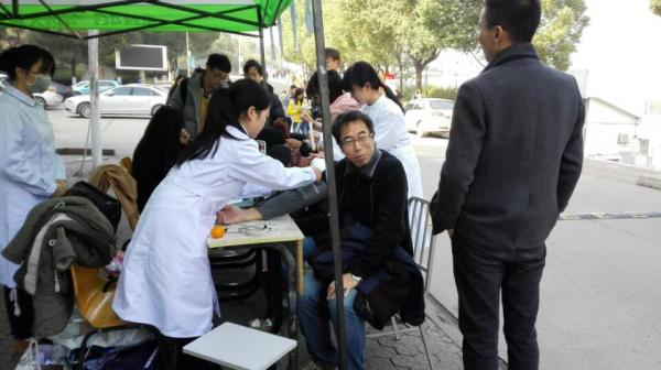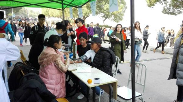 活动开始后,医学协会成员兵分两路,一组专们负责邀请路过的老师,一组专们负责为老师们测血压、做艾灸。此活动一开始便吸引许多人前来驻足观看。医学协会成员们的热情和细心,让每位老师老师们也从最初的害羞到最后的享受高兴。在活动现场可以看到,医学协会成员在为老师及学生测量血压后,便根据他们的血压情况给予相应的建议。该活动不仅吸引了众多老师前来参与,也引起了外国留学生的注意,两位留学生在看到义诊活动之后,也来到了帐篷处准备测量血压及做艾灸。测量途中,两协会成员一直用不太流利的英语与留学生交流,在艾灸之后,两位留学生均表示:“It is very comfortable!”并对协会成员表示了衷心的感谢。护理学院医学协会成员曹广霞对此次活动也相当满意,笑着说道:“作为大一新生,此次活动让我感受到了护理的应用价值,在服务过程中,我感觉到了爱的传递,感觉很有成就感。”