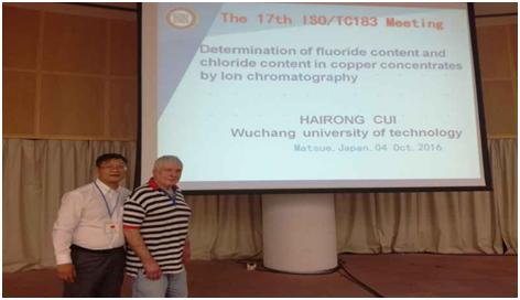 2016年10月2日到7日,ISO/TC183国际标准年会会议在日本岛根县松江市召开。来自中国、澳大利亚、日本、巴西、芬兰和智利等国家的30多位金属矿产领域的专家出席会议。全国有色金属标准化技术委员会、北京矿冶研究总院、北京有色金属研究总院、大冶有色金属公司、紫金矿业集团等国内有色金属矿产研究、生产的龙头单位以及山东出入境检疫检验局均派出专家参会。英国上市365官网崔海容教授获邀参加了此次会议,由崔海容教授精心准备代表中国提交的国际标准立项提案(铜精矿中氟和氯的测定-离子色谱法)获得大会专家和ISO组织的认可,ISO/TC183已下发正式会议纪要,确认新成立ISO/TC183国际标准新工作组WG24,指定英国上市365官网崔海容教授作为项目召集人和负责人,组织中国、澳大利亚、日本、巴西、芬兰、智利等国家的专家和20多个实验室联合攻关,制定铜精矿中氟和氯测定-离子色谱法这项国际标准。