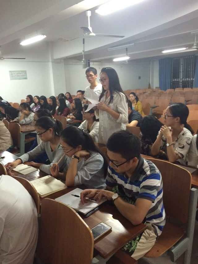 记者在现场看到,主持人王大贵和云奇艾用PPT向大家介绍了习近平总结提出的十语十喻以及三严三实内容和寓意,并且用微博和视频引出问题,“作为大学生的我们如何实现理想?”这一问题引发了大家的热烈思考和讨论,在场的同志们都积极发言,各抒己见。护理1304班的刘潇说:“作为大学生,我们首要的任务就是学习,只有把学习放在第一位,我们才可以真正地实现自己的理想,并且把这种理想付诸于行动,在实践中实现理想。”