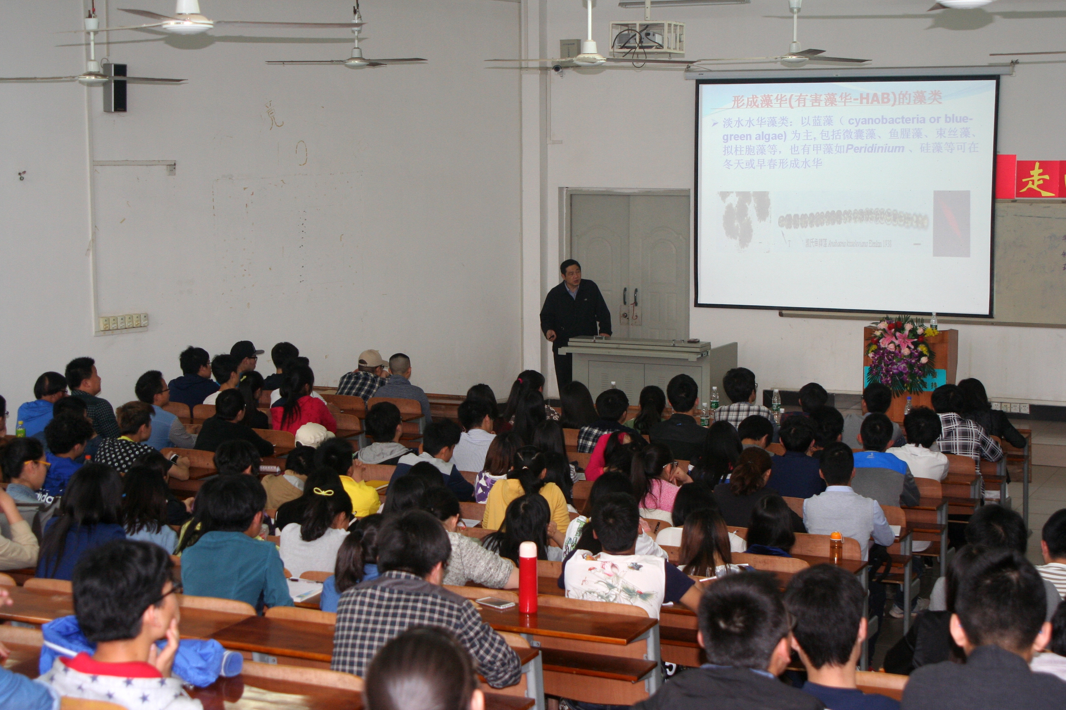 宋立荣研究员致力于我国淡水藻种资源的保藏、利用和管理,为我国藻类基础和应用研究做出了持续贡献。现担任中国科学院淡水藻种库主任、中国科学院藻类生物学重点实验室副主任、中国藻类学会理事长、中国环境科学学会水环境分会副理事长、美国藻类学会终身会员;主持科技部、基金委和科学院等部门多项课题。数次应邀在国际学术会议上作特邀或主旨报告。此次365官网出席报告会的有阮院长、吴书记、环工万主任、环境工程全体老师,以及图书馆刘馆长。