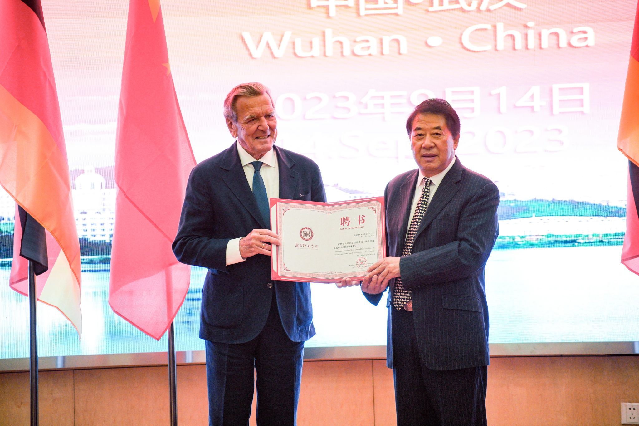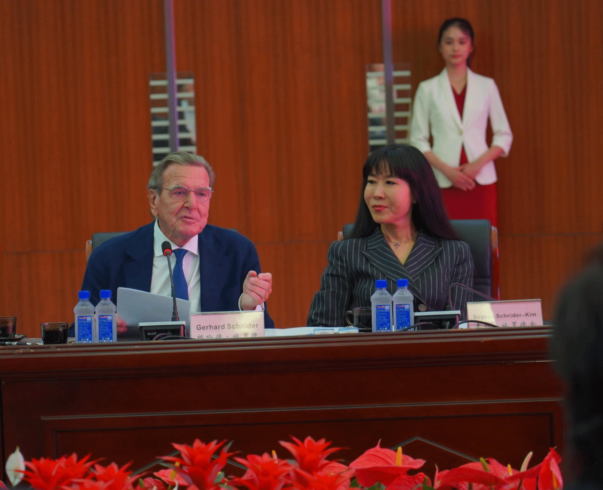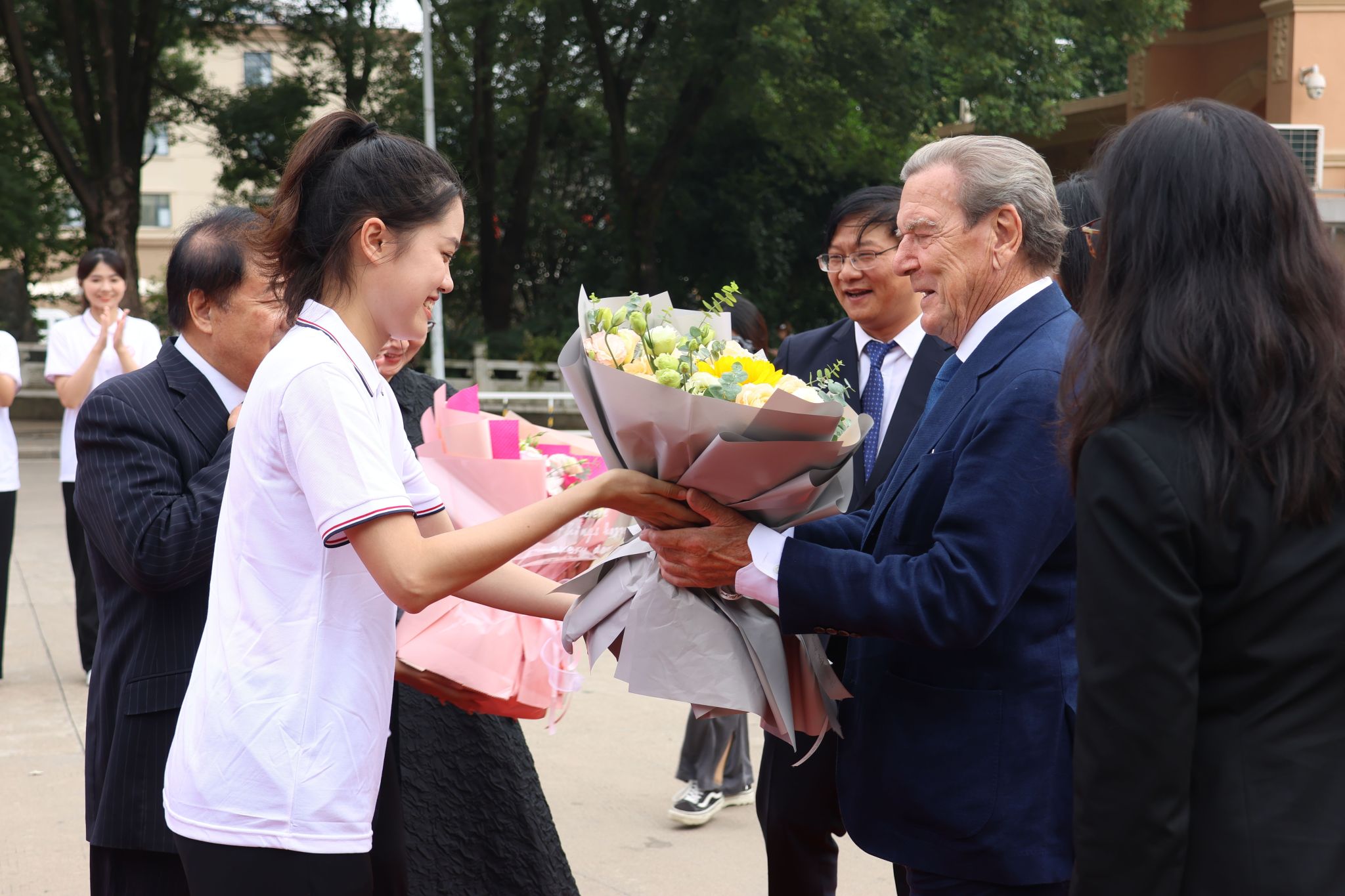“希望你们在未来继续稳步前行,为创办一所中国人自己的世界一流民办大学贡献中国教育家的智慧和力量。”施罗德先生还表示,他在这里亲身感受到中国青年学子的热情、勤奋和努力,对德中青年交流、教育合作的未来更加充满信心。他愿积极推动德国的教育部门和大学来华开展交流合作,鼓励德国企业参与和支持,让德中合作和交流更加广泛和深入。