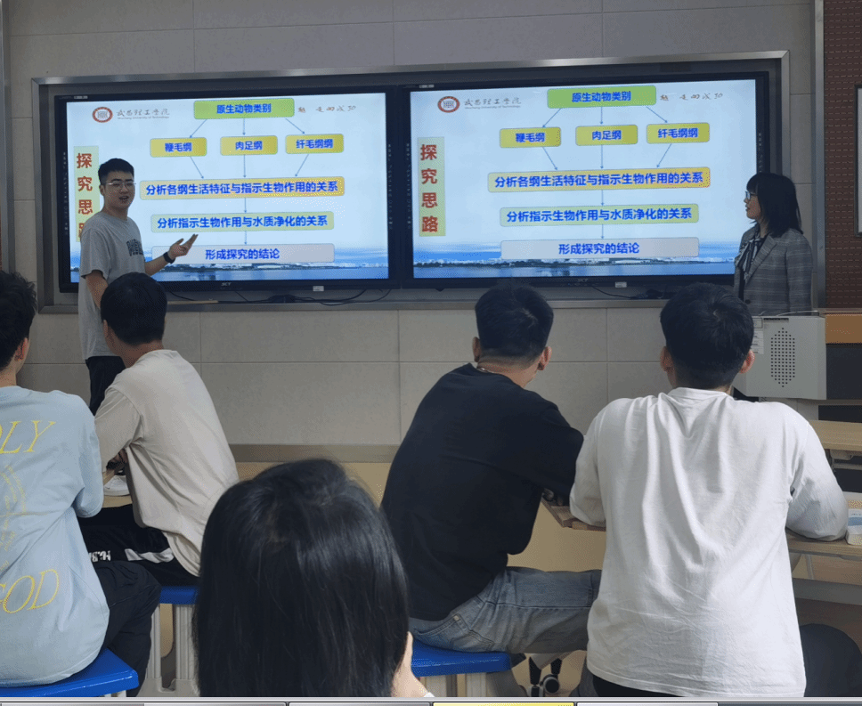 环境工程专业陶星同学说,万老师的微生物学课堂上,老师讲解理论知识时会精心设计引发学生探究和启发学生思维的思考题,问题环环相扣,使得知识点的脉络非常清晰,课堂互动氛围也非常活跃。老师讲解微生物学原理及技术应用案例时,会提前把需要分组讨论的讨论题发布在学习通班课上,同学们提前收集相关资料为课堂讨论发言做好准备,上课时各小组展开交流讨论并选派代表总结发言,讨论过程和总结发言都能很好地培养学我们的创新思维能力和归纳总结能力。