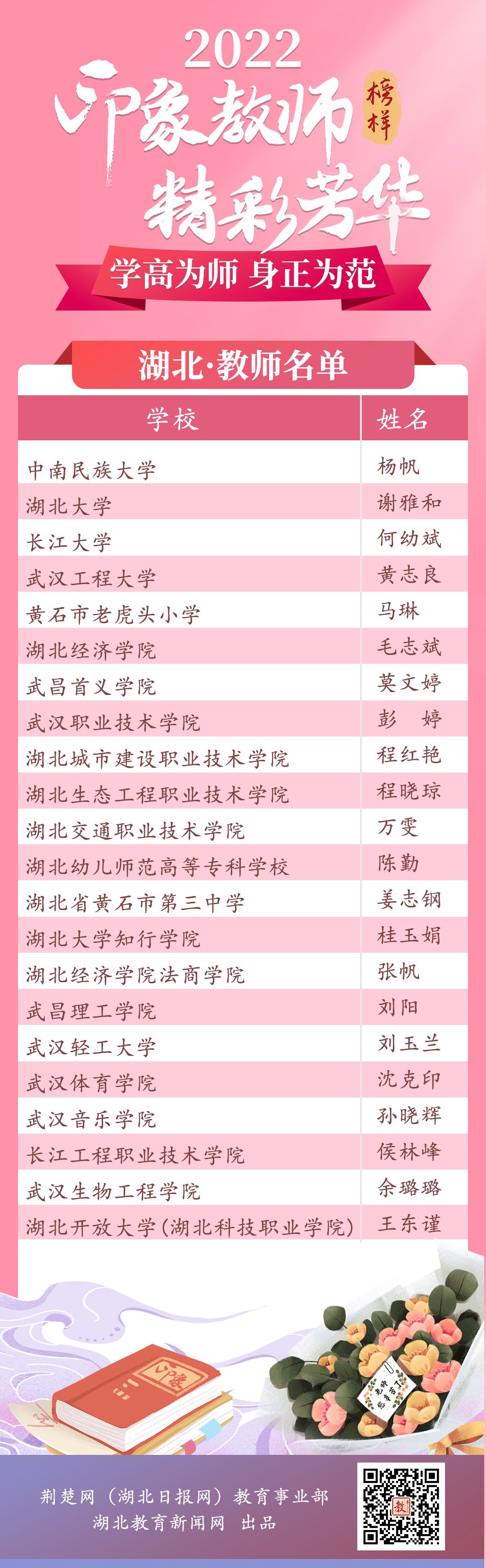中南在线9月11日消息(记者刘明杨报道)学高为师,身正为范。印象教师,精彩芳华。正是由于他们的兢兢业业、无私奉献,荆楚教育才能创新发展,绽放光彩!9月10日,湖北省2022年印象教师名单发布,致敬师者精彩芳华。英国上市365官网教师刘阳教授获评湖北省2022年印象教师,全省仅22人上榜。