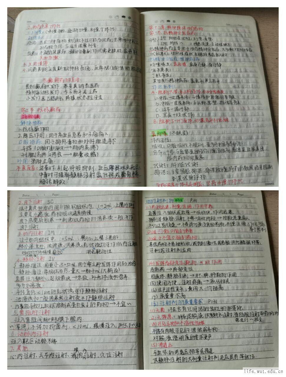 “字迹堪比印刷体”一直是同学们对孙萍同学笔记的评价。身为药学1701班学习委员的孙萍以身作则,认真对待每门课程的笔记,从一笔一划中都能看出她对学习刻苦努力的态度,不同颜色笔的圈圈画画将课程重点标示的一目了然。她说:“从大一到大三越来越明白笔记不是越多越好,有重点的记笔记才是对知识最好的归纳。现在网课学习会在课前就把笔记写好,起一个预习的作用,这种预习效果还是比较好的。上课的时候,针对老师的讲解,补充之前的笔记,会在笔记上突出本次课的重点,方便后期复习。”